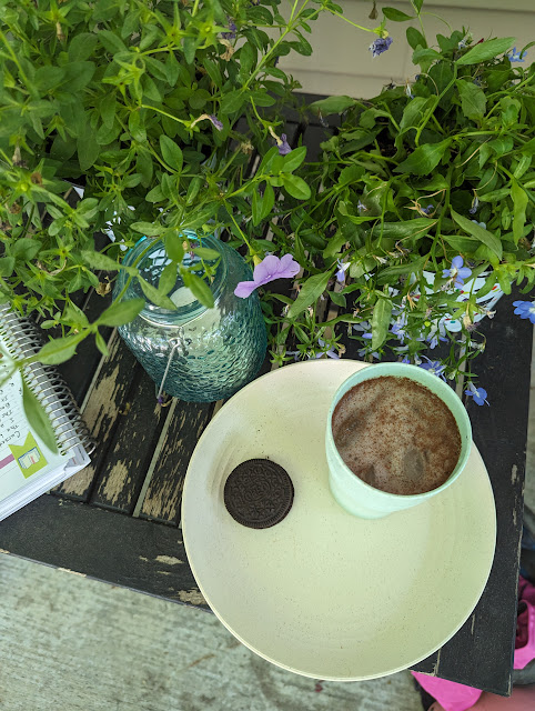 The bikes stayed parked all afternoon because they had so many other things they wanted to do, but toward the end of the day, they were riding them pretty fast down the sidewalk and around the apartments and down the alley - where cars might back out of garages suddenly. I really try to hold back from constantly telling them to slow down and don't do this and don't do that. I see kids riding all over town about their age, even downtown (such as it is), but I'm going to be a Debbie Downer for another summer anyway.