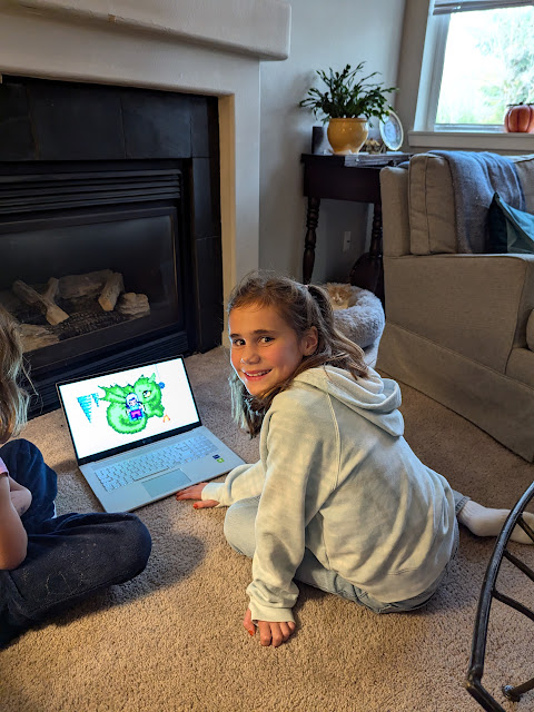 During the afternoon, the girls worked on designing a video game. I have no idea what they're doing, but they love it and impressed me!
